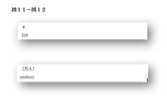 図11および図12では、さらに重大な誤訳が見られます。「¥」が「$20」と訳されていたり、「万人」が「million people(100万人)」と誤って訳出されています。