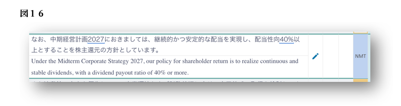 図16では、多くのIR資料に共通して登場する用語「中期経営計画」が、「Midterm Corporate Strategy」と訳されています。