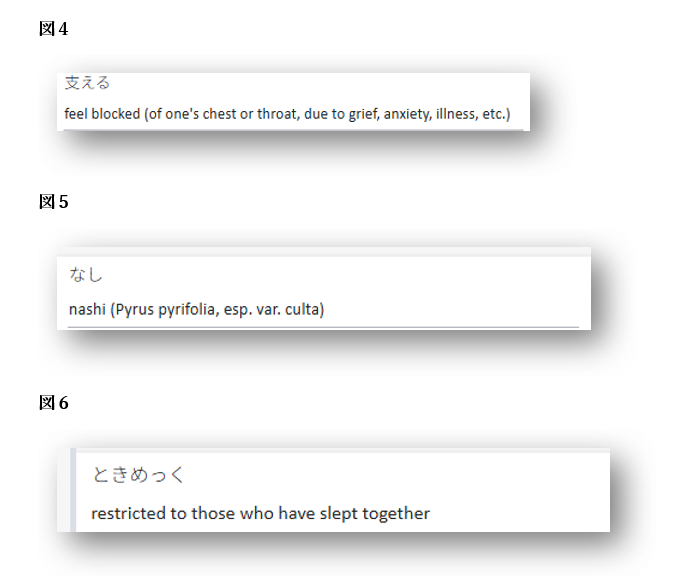 図4〜図6は、機械翻訳でよく見られる別の問題、「辞書的な出力」の例です。