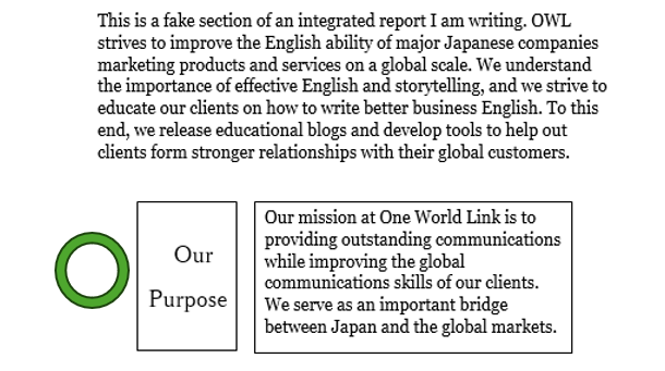 仮の統合報告書をもとに作成した例をご覧ください。