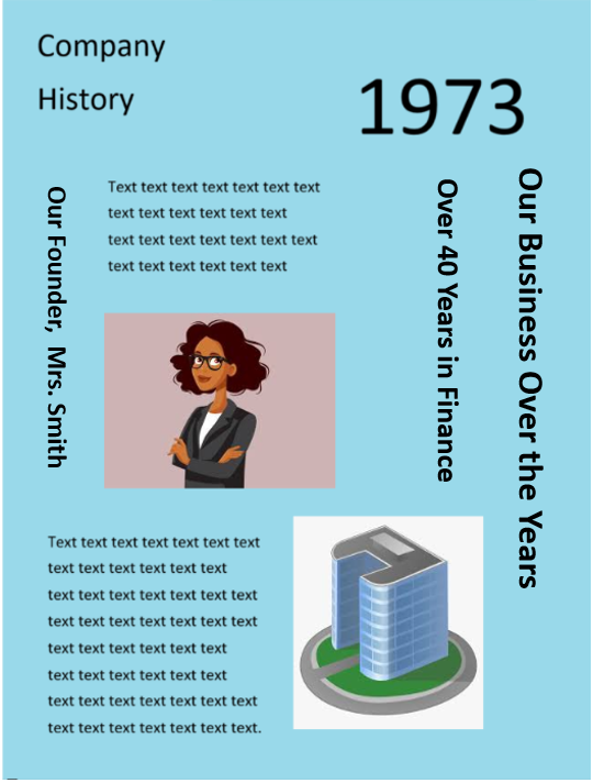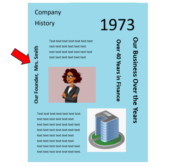 このような場合、見出しが必ず本文側を向くように、テキストを時計回りまたは反時計回りに回転させるのが最適です。すべての見出しが同じ方向を向かなくても構いません。読者が自然に内容へと視線を誘導できることが最も重要です。